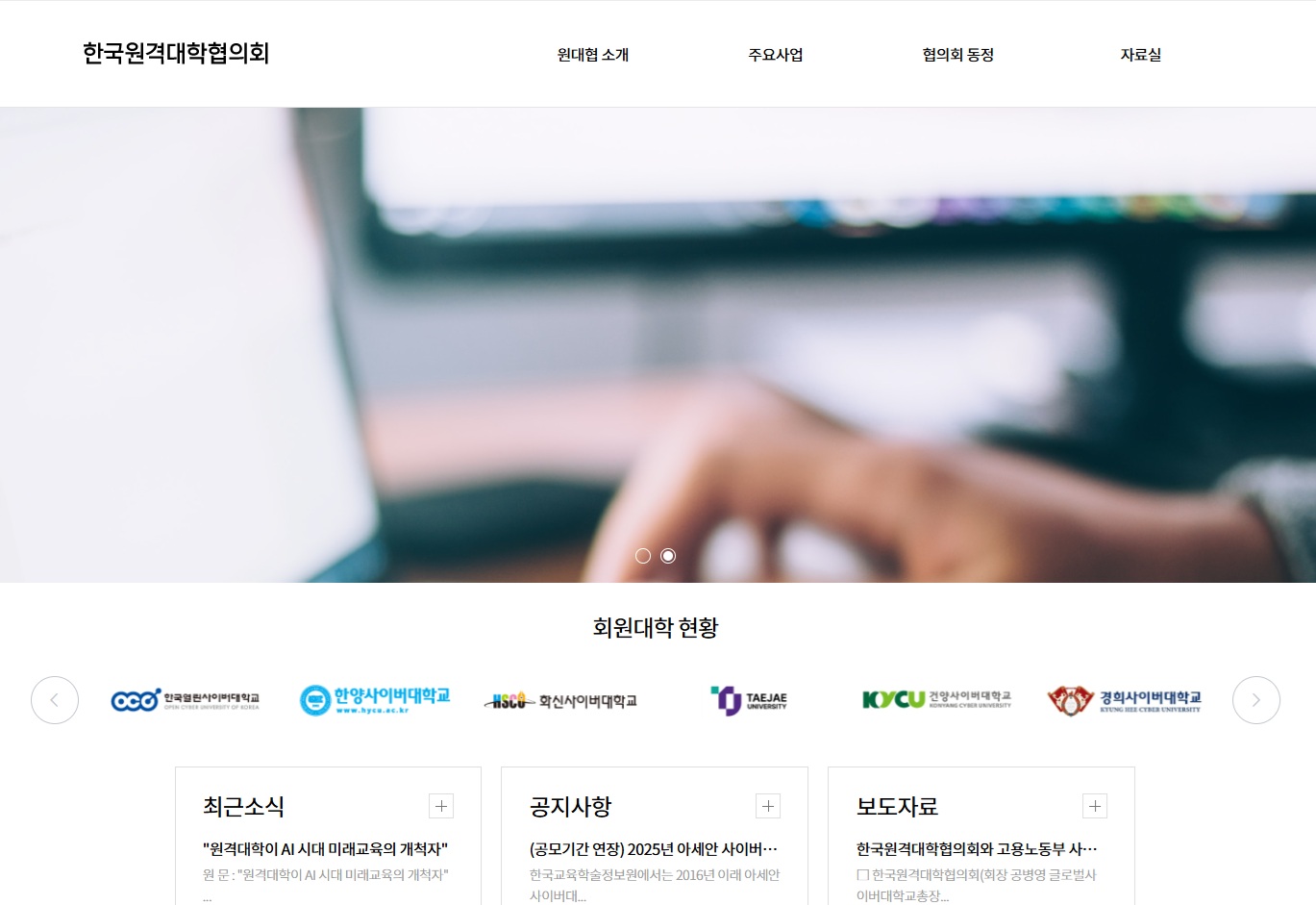 국내 사이버대학 협의체 ‘한국원격대학협의회’ 홈페이지