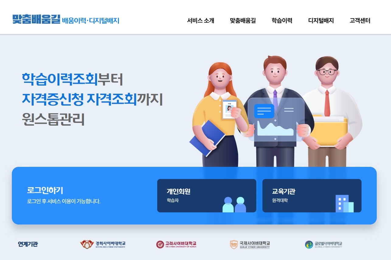 사이버대학에서 수강한 학습이력 확인 및 증명서비스