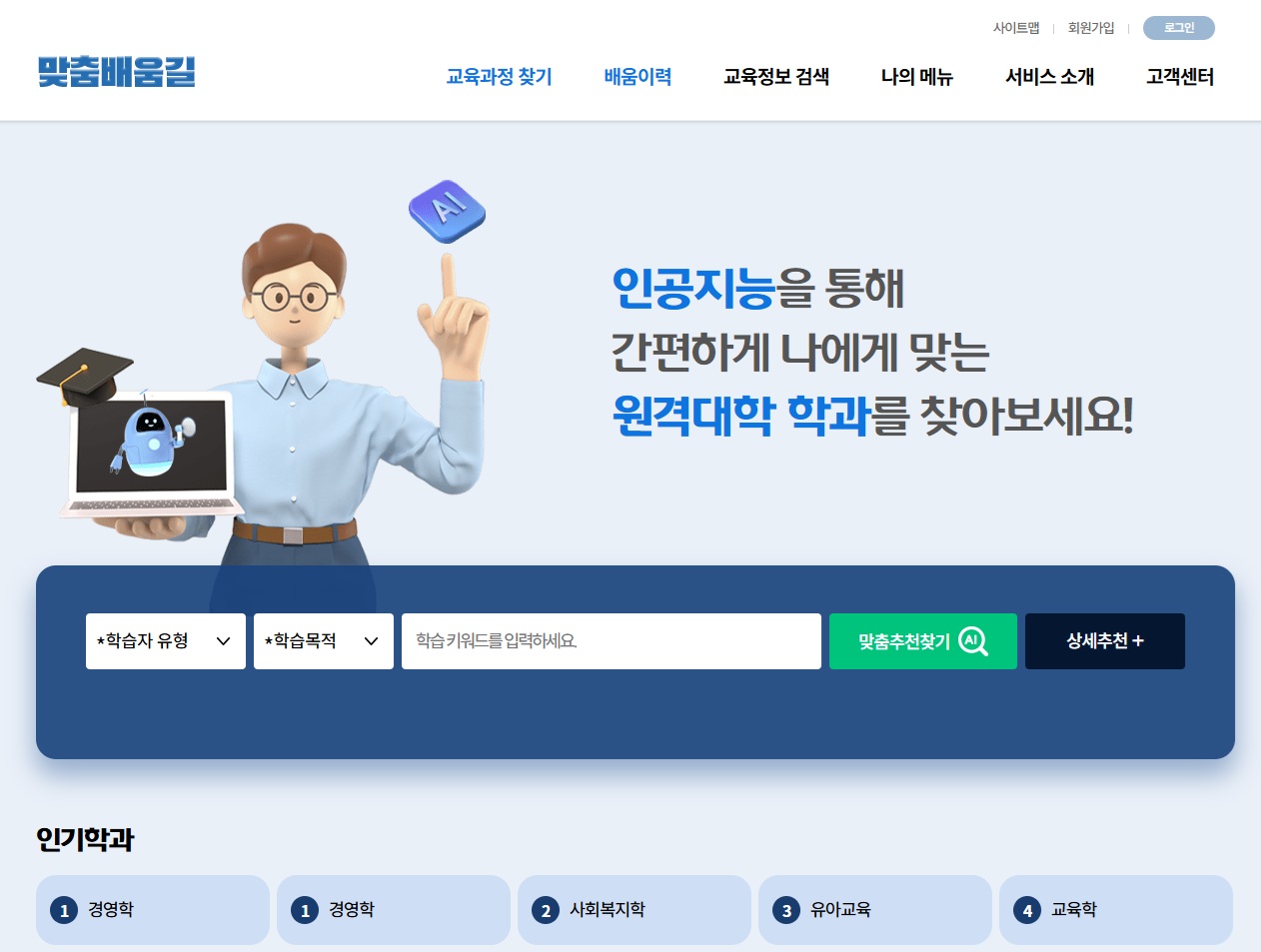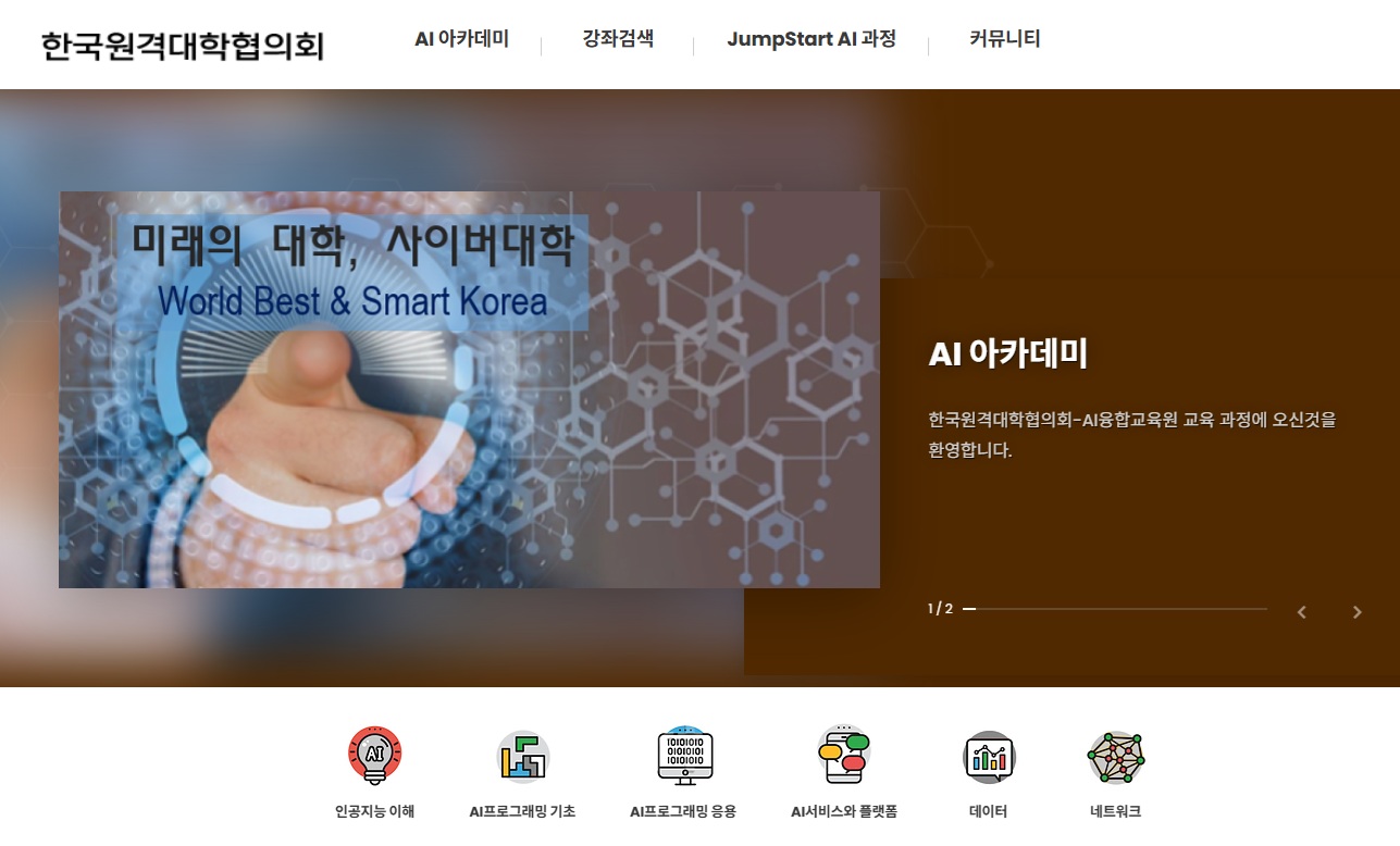 한국원격대학협의회 산하 AI융합교육원에서 AI 관련 교육 서비스를 제공하는 사이트